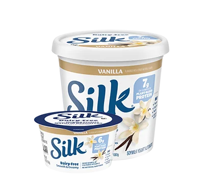A smooth soymilk yogurt alternative blended with a hint of vanilla flavor. It’s dairy-free, creamy goodness on a spoon.