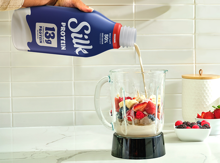 Say hello to the pour that gives you more. With 13 grams of complete, plant-based protein per serving and 50% less sugar than regular dairy milk*, you can enjoy all that protein and great taste with less sugar.*Silk Protein Original: 4g sugar/cup; reduced fat milk: 11g sugar/cup